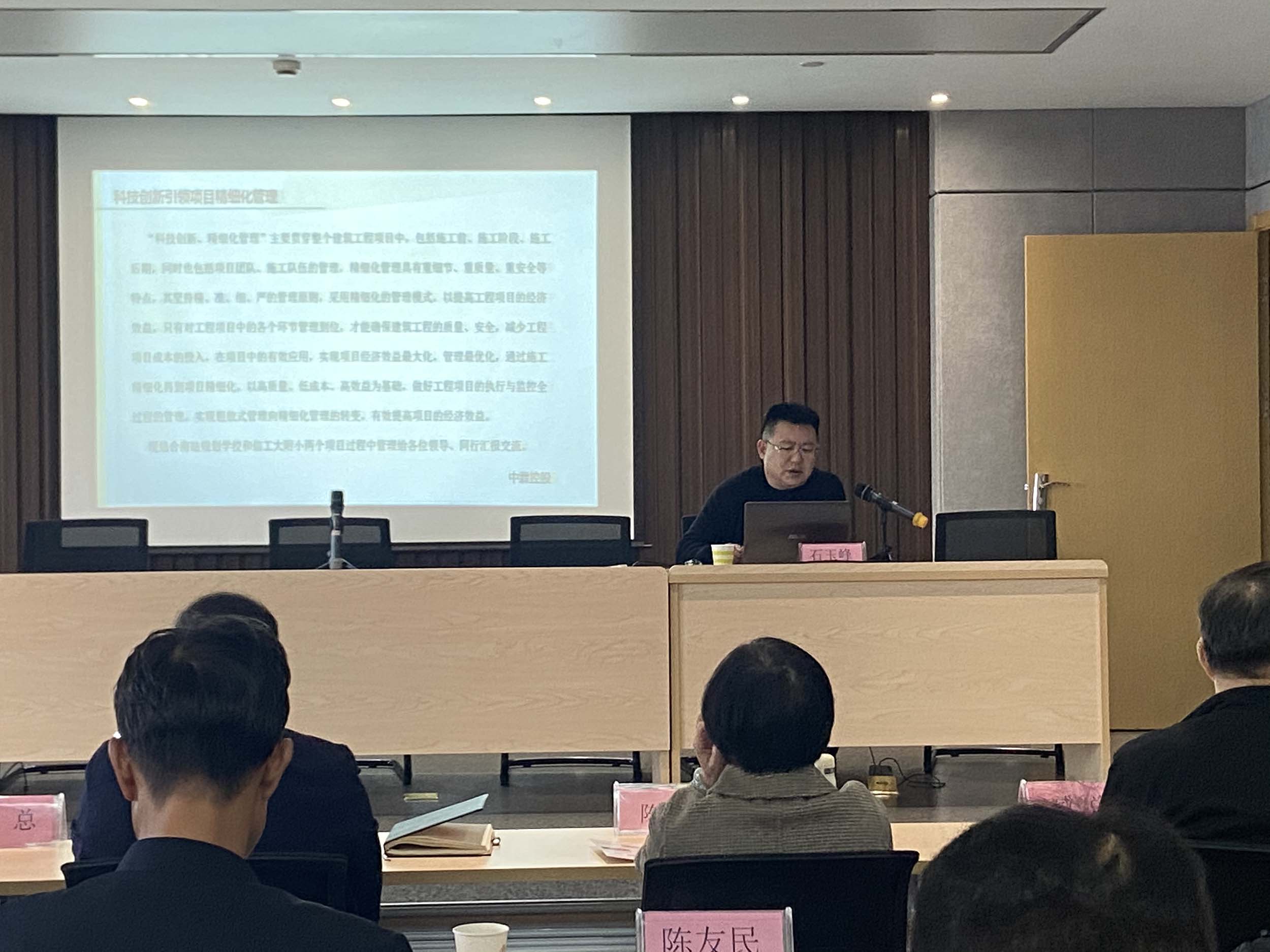 2022年11月19日,八建首屆論壇,項目部經(jīng)理石玉峰作《科技創(chuàng)新引領(lǐng)項目精細化管理》工作交流匯報和經(jīng)驗介紹 -